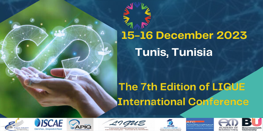 Le Laboratoire Interdisciplinaire de Gestion Université-Entreprise (LIGUE-ISCAE, Université de la Manouba), organise les 15 et 16 Décembre 2023 à Tunis, une conférence internationale sur le thème « Intégration des transitions inclusives, circulaires et technologiques : défis et opportunités pour les organisations et les parties prenantes ».