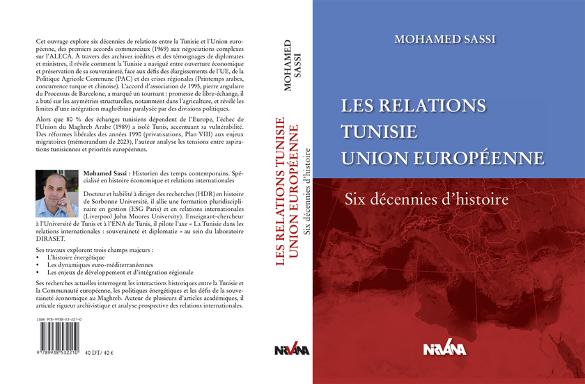 À l’heure où la Méditerranée reste un espace de fractures et de convoitises, le livre Les relations Tunisie-Union européenne : Six décennies d’histoire de Mohamed Sassi (Éditions Nirvana, Tunis, 2025) se présente comme une boussole indispensable pour décrypter les dynamiques complexes d’un partenariat oscillant entre coopération et domination. Bien plus qu’un simple récit historique, cet ouvrage audacieux propose une radiographie critique d’une relation façonnée par les héritages coloniaux, les réalpolitiques économiques et les luttes pour la souveraineté.