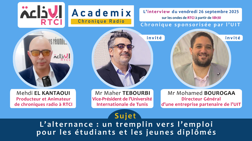 Vendredi 26 septembre 2025, l’émission Academix sur les ondes de RTCI a consacré son plateau à un sujet crucial pour l’avenir des jeunes Tunisiens : l’alternance comme voie d’insertion professionnelle. Deux invités de marque étaient présents pour en débattre :