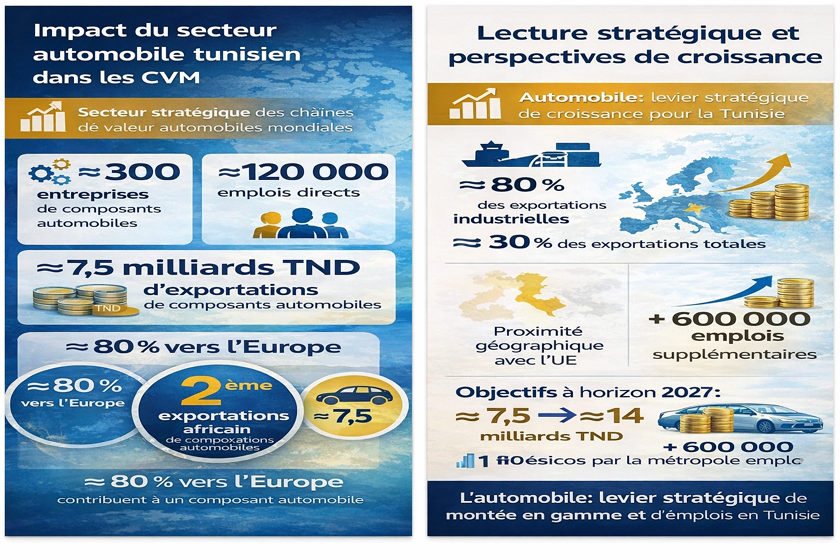 Et pour conclure, nous insistons sur le fait que l’insertion des secteurs industriels tunisiens dans les CVM représente une opportunité stratégique afin de renforcer la compétitivité, d’attirer des investissements et de générer des postes qualifiés. En mettant l’accent sur l’innovation et la productivité, la Tunisie a la possibilité de consolider sa position économique tout en garantissant un développement durable. L’exemple de Valeo Tunisia témoigne de ce potentiel.