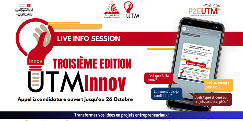 Le Pôle de l’Étudiant Entrepreneur de l’Université de Tunis El Manar (P2E-UTM) annonce l’organisation du Démo Day de sa 2ᵉ cohorte 2024-2025, qui se tiendra le mardi 14 octobre 2025, de 9h à 12h, à l’Ecole Nationale d’Ingénieurs de Tunis (ENIT). Après le franc succès de la première édition, tenue en novembre 2024, cette […]