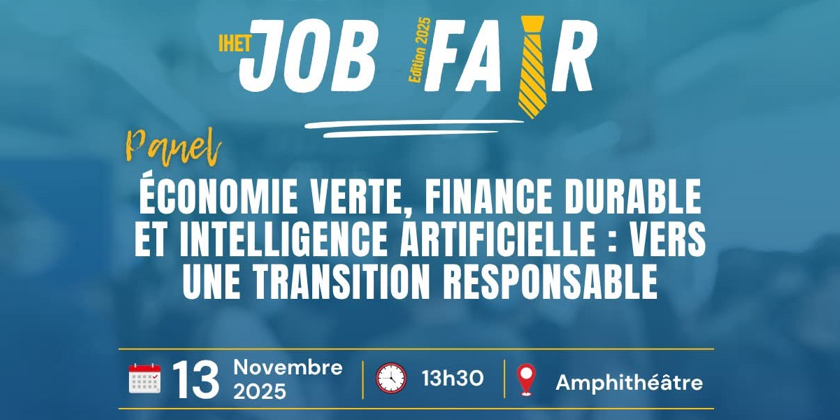 Le 13 novembre 2025 à 13h30, l’IHET a organisé, dans son amphithéâtre, un panel majeur dans le cadre du Job Fair IHET – Édition 2025, intitulé : « Économie verte, finance durable et intelligence artificielle : vers une transition responsable ». Cet événement a réuni trois intervenants issus du monde professionnel, occupant des postes stratégiques […]